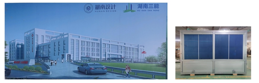 本项目选用2台翅管蒸发冷却式双高效冷热水机组,提供供冷、供暖。
